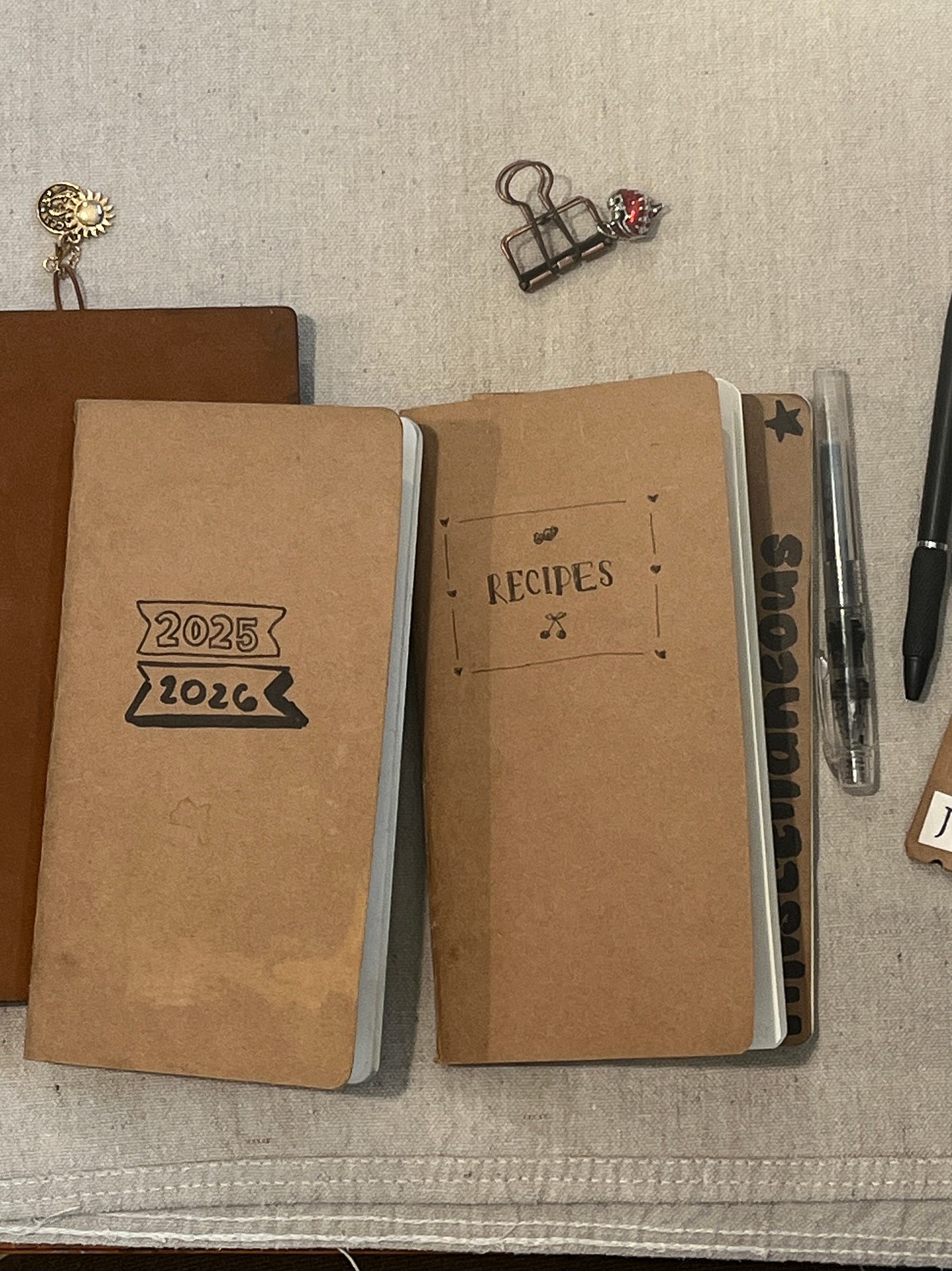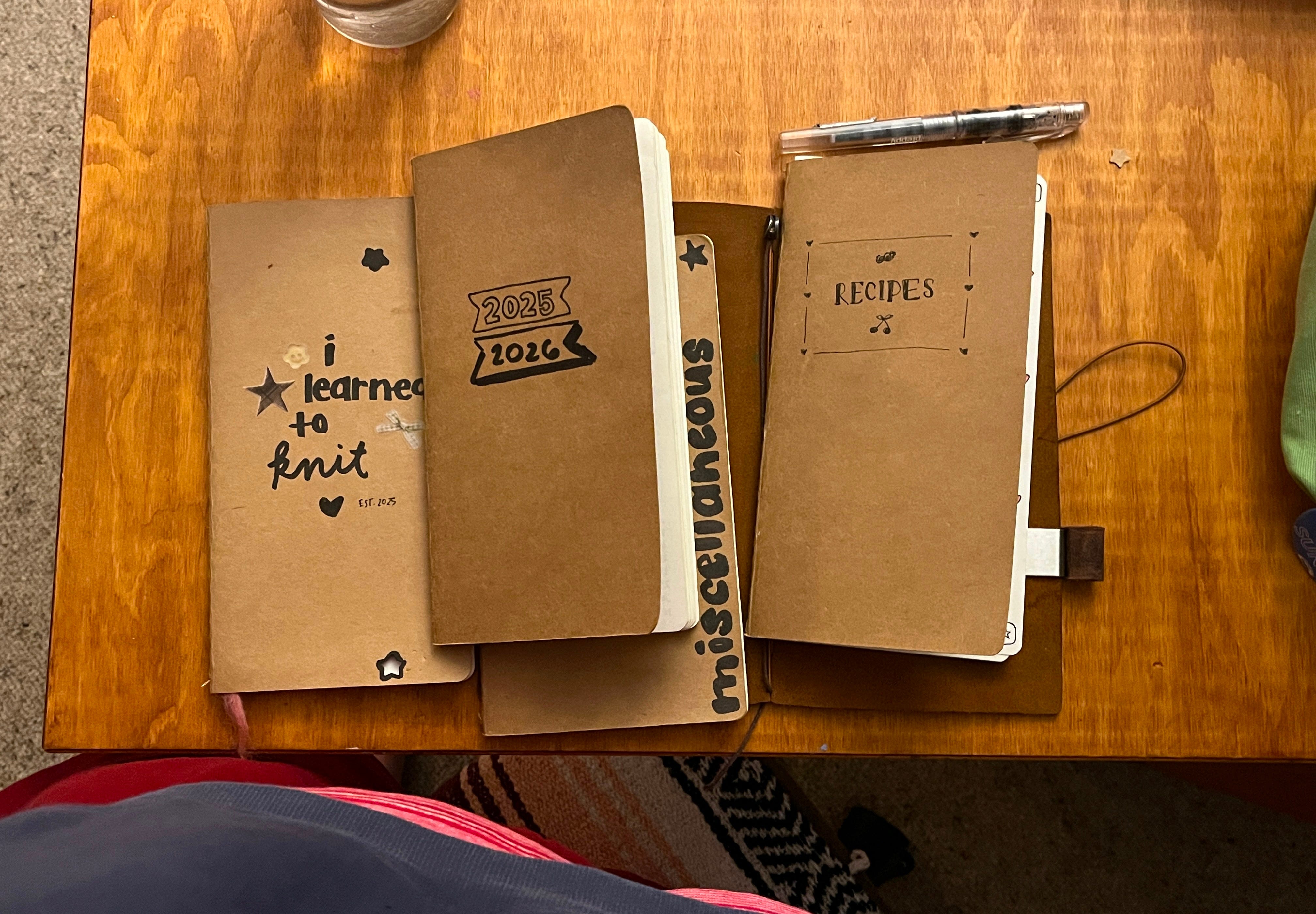 ✿ traveler’s notebook: rotation of four inserts: weekly/monthly planner, miscellaneous notes, knitting journal, and recipe book